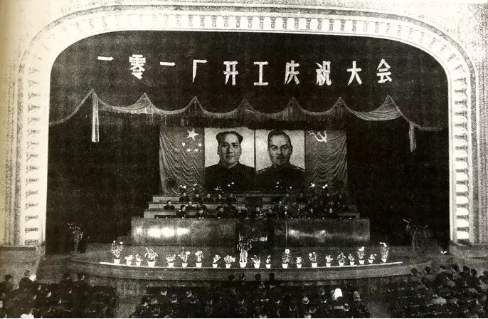1954年,基础建设工程正式破土动工。经过两年半的奋战,包括熔铸、轧板、挤压三大生产车间及动力车间等配套工程在内的一期工程全面完成,形成了2.6万吨的生产能力,成为当时亚洲最大的综合性铝加工厂。1956年11月5日,101厂举行了隆重的开工生产庆典。时任黑龙江省委书记欧阳钦出席仪式并为工厂开工生产剪彩。在近4000名东轻人的欢呼声中,新中国第一张铝板诞生了,中国不能生产铝合金材料从此成为了历史。