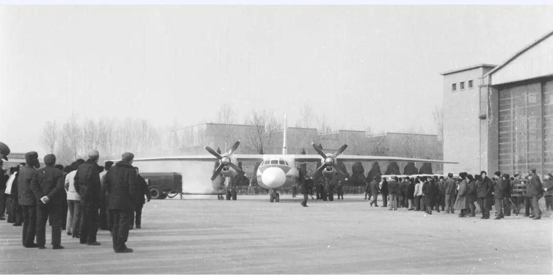 11月,运7飞机在首都机场汇报飞行。