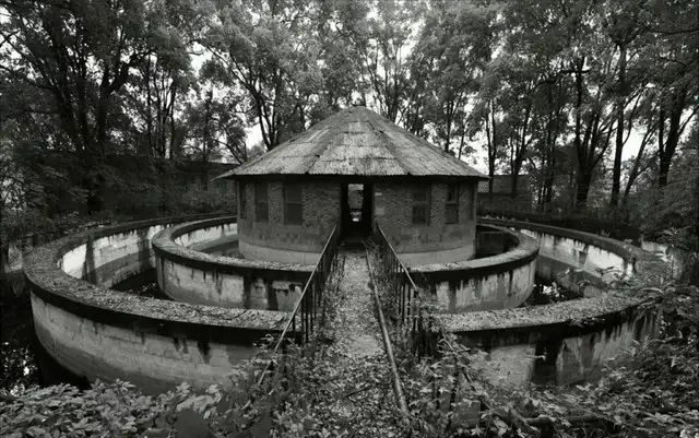 走进茂密的香樟林,寻觅当年工厂的标志性建筑——自来水厂澄清循环水池,是目前保存下来而且比较完整的建筑物之一。走近它的身边,仿佛能听到它的心跳和呼吸。亲眼目睹这个历史的“物证”,看到的不只是这个工程的坚固与精美,还有当年兵工人艰苦奋斗的创业精神,还有当年兵工人精益求精的工匠精神。这个满目沧桑的水池,既是一处现代工业文明的遗址,也是二十三兵工厂的历史记忆。