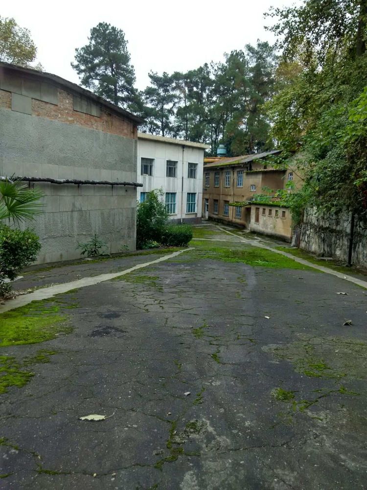 右边一栋房子是成品仓库。左边房子是总务科,楼上是医务室,楼下有理发室