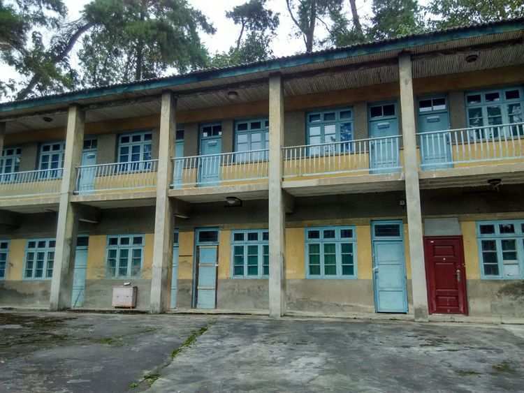 坐落在半山腰的楼房是85年8月竣工的女职工单身宿舍