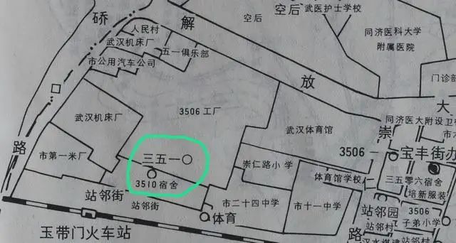 3510工厂旧址位于武汉市硚口区汉宜路旁的军需俱乐部附近,曾经是3510工厂的文化设施。工厂宿舍则位于站邻街.