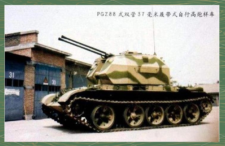 继74式37毫米双管高射炮的成功推出后,497厂在1978年又着手研制88式双管37毫米自行高射炮。这款高射炮初期以59式坦克为底盘,并配备了半自动的双管37毫米高射炮,以及当时最先进的雷达和光电坐标指示器。后来,76式双37舰炮火控系统被引入,同时底盘也升级为79式中型坦克底盘。经过多年的研发,PGZ-88式自行高炮在1989年11月终于定型,并开始大规模生产。