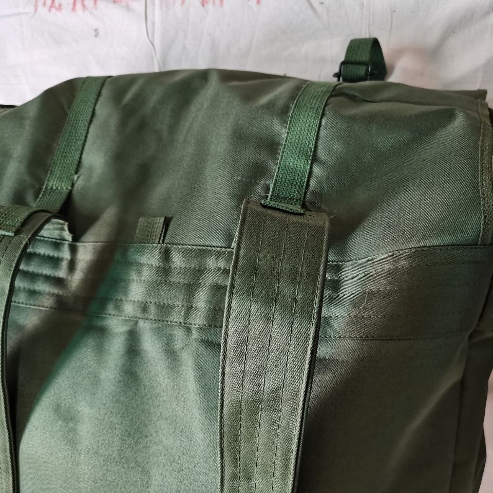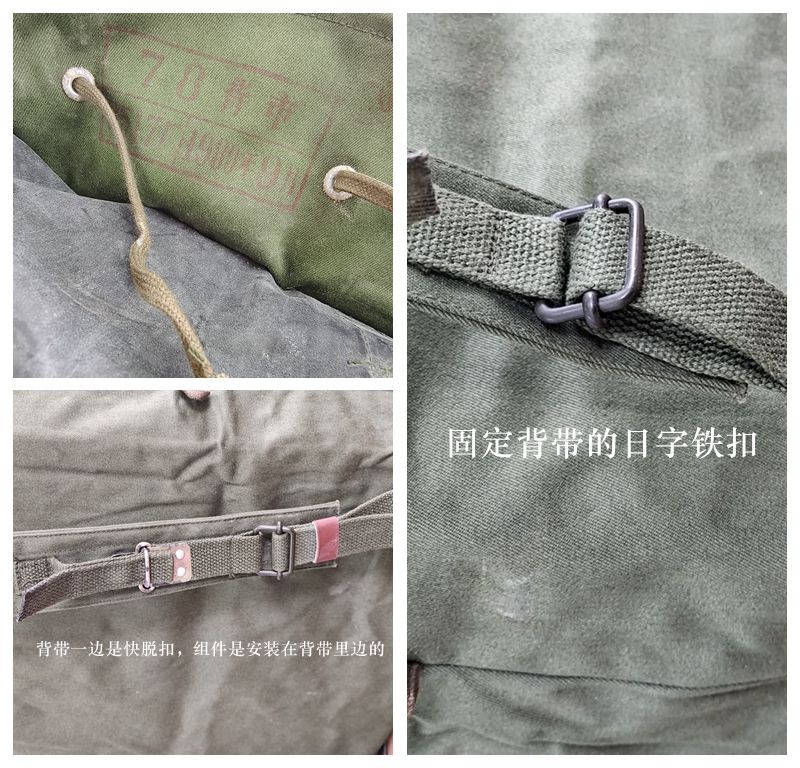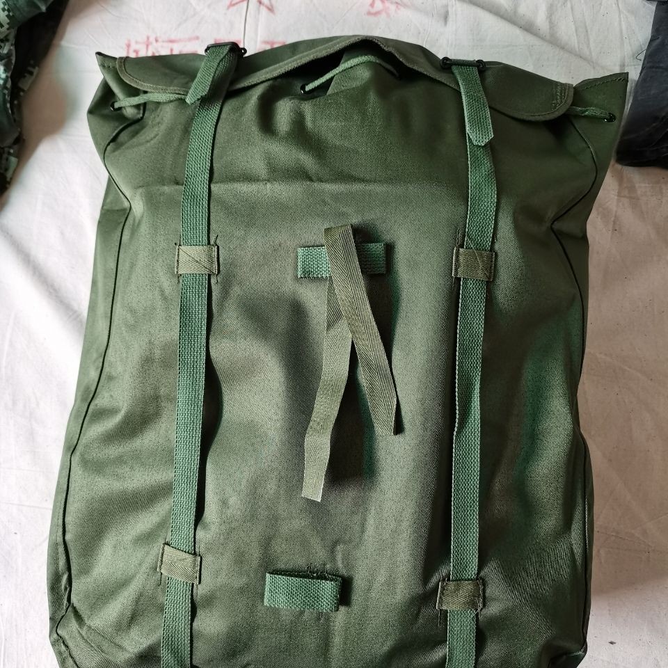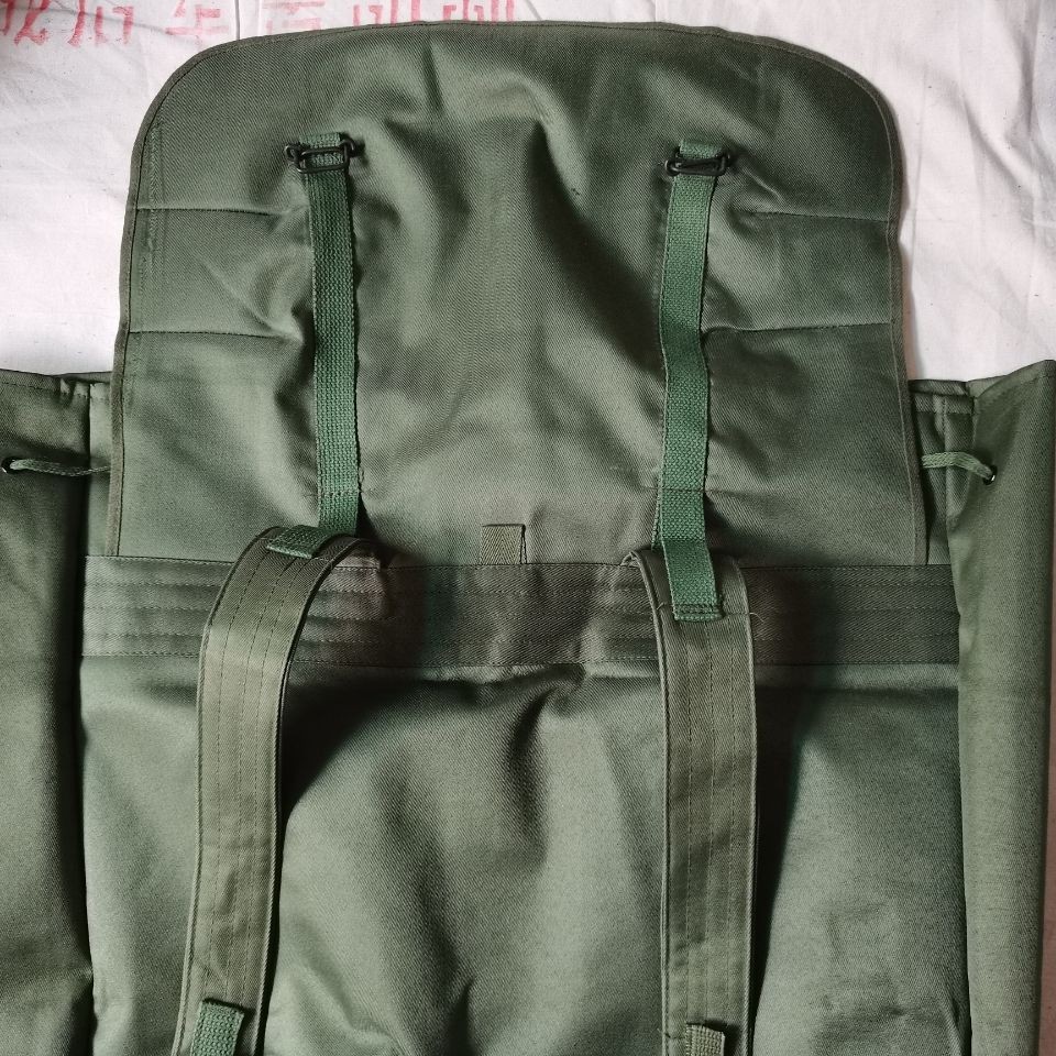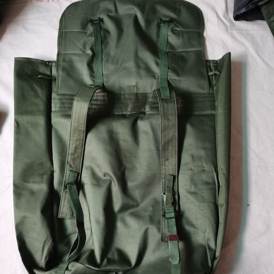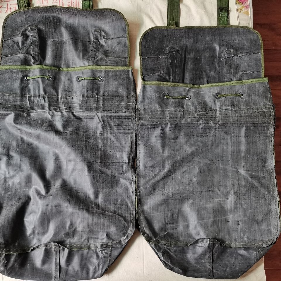 78式背囊70年代末的时候,在训练和战斗时南方部队的被褥经常被雨水淋湿,于是78式背囊被研发出来,主要在80年代越战中广泛使用,在北方部队基本上很少见。这个包极具七八十年代的风格和特点,外面是军绿色帆布,在帆布内涂满了黑色塑胶用于防水层,内部没有分格,大约在40升左右。正品78背包材质:外用绿色涤卡面料,内衬黑橡胶防水层,结实耐用,防水保温尺寸(厘米):45*38*20容量:40升颜色:军绿重量:净重0.8公斤生产厂家:3517厂该背囊设计简洁、美观、大方,容量大,防水性能极佳,做工精良,无论是家居收纳,外出旅行,都是不错的选择,特别是除了装衣物,还可兼作水桶使用,注意事项:本品出厂时是反面叠放,橡胶内衬在外,为保护橡胶内衬,洒有滑石粉,且因没有单独包装,可能稍有灰尘,可直接以水清洗、78防水背包是第一代正式装备我军的制式背包(此前我军一直使用打包带捆扎的方法携带随行装具)。该背囊容量很大,外观方形,采用双肩背式,外为绿色帆布,内衬黑胶防水层,所用材料与军雨衣一样,防水性能极佳。左肩背带有快拆扣设计,目的是方便行军作战中遇到紧急情况时快速地脱卸,迅速进入实战状况 ~尽管作为背包在透气性支撑效果以及长途背负舒适度上存在不足,但作为我军第一代制式背囊无疑是具有突破性历史意义的。78背包是为了满足对越自卫反击战的急需而紧急设计生产出来的,在耗时近十年的战争中广泛使用,如今它早已退出我军现役装备,但是在广西云南西藏以及越南缅甸的边民中仍然广泛使用,这也客观反映出那场战争对边境地区居民的深久影响。