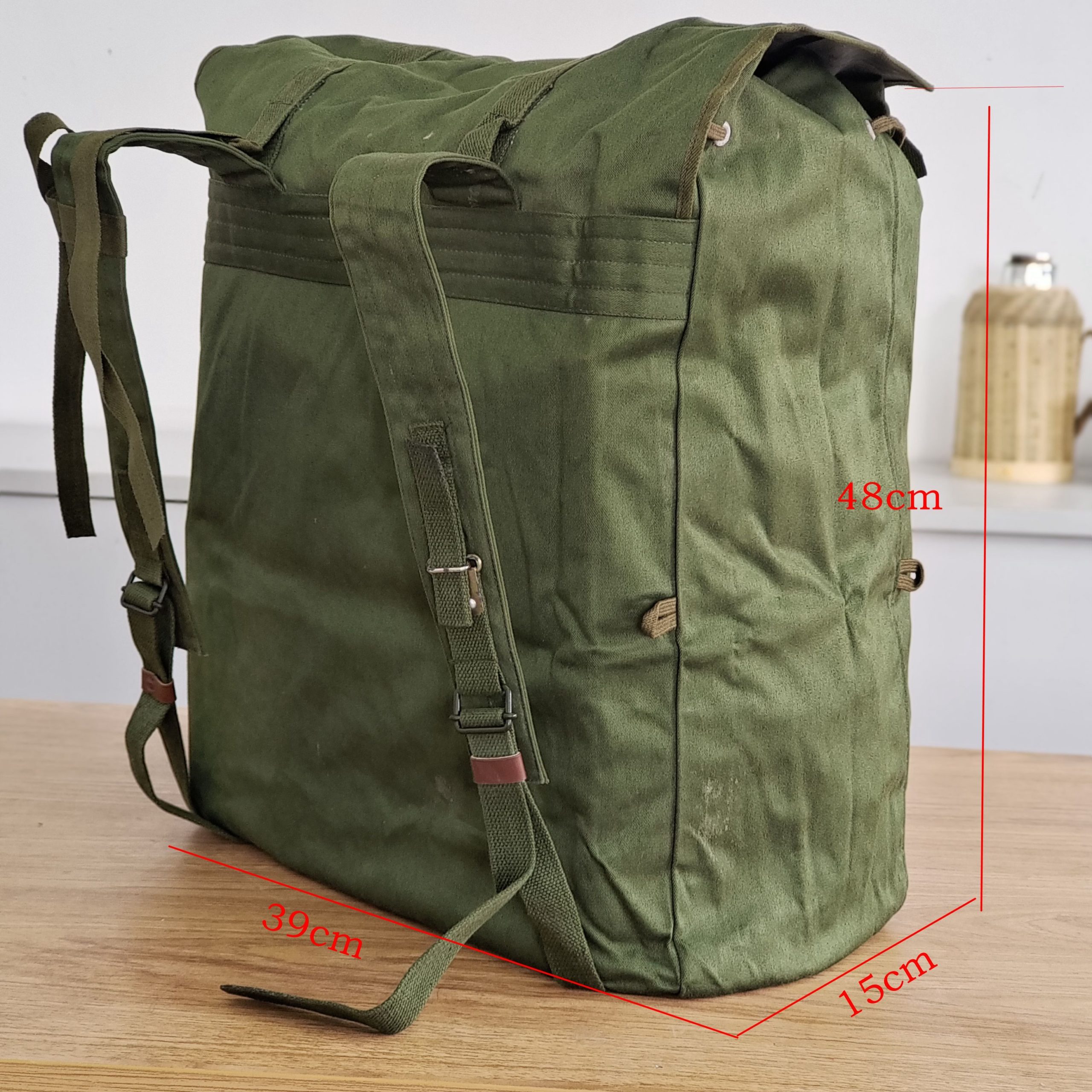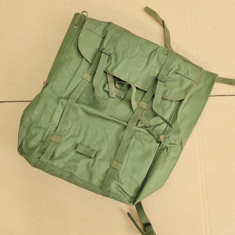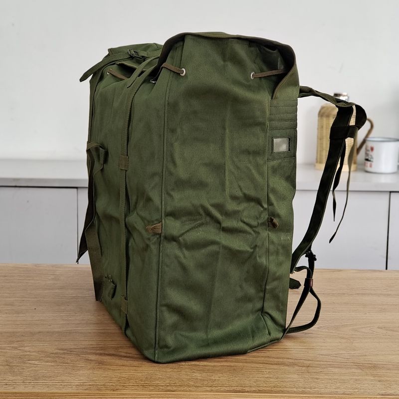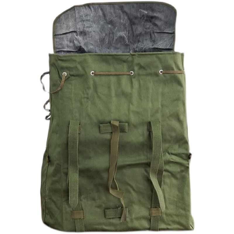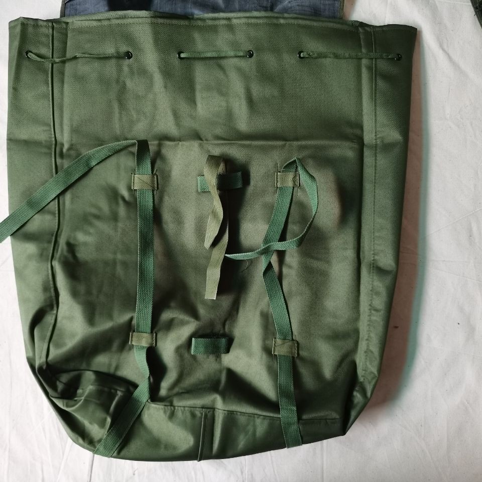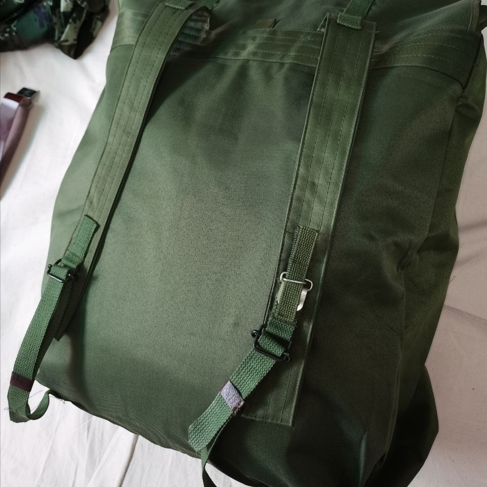 78式背囊70年代末的时候,在训练和战斗时南方部队的被褥经常被雨水淋湿,于是78式背囊被研发出来,主要在80年代越战中广泛使用,在北方部队基本上很少见。这个包极具七八十年代的风格和特点,外面是军绿色帆布,在帆布内涂满了黑色塑胶用于防水层,内部没有分格,大约在40升左右。正品78背包材质:外用绿色涤卡面料,内衬黑橡胶防水层,结实耐用,防水保温尺寸(厘米):45*38*20容量:40升颜色:军绿重量:净重0.8公斤生产厂家:3517厂该背囊设计简洁、美观、大方,容量大,防水性能极佳,做工精良,无论是家居收纳,外出旅行,都是不错的选择,特别是除了装衣物,还可兼作水桶使用,注意事项:本品出厂时是反面叠放,橡胶内衬在外,为保护橡胶内衬,洒有滑石粉,且因没有单独包装,可能稍有灰尘,可直接以水清洗、78防水背包是第一代正式装备我军的制式背包(此前我军一直使用打包带捆扎的方法携带随行装具)。该背囊容量很大,外观方形,采用双肩背式,外为绿色帆布,内衬黑胶防水层,所用材料与军雨衣一样,防水性能极佳。左肩背带有快拆扣设计,目的是方便行军作战中遇到紧急情况时快速地脱卸,迅速进入实战状况 ~尽管作为背包在透气性支撑效果以及长途背负舒适度上存在不足,但作为我军第一代制式背囊无疑是具有突破性历史意义的。78背包是为了满足对越自卫反击战的急需而紧急设计生产出来的,在耗时近十年的战争中广泛使用,如今它早已退出我军现役装备,但是在广西云南西藏以及越南缅甸的边民中仍然广泛使用,这也客观反映出那场战争对边境地区居民的深久影响。
