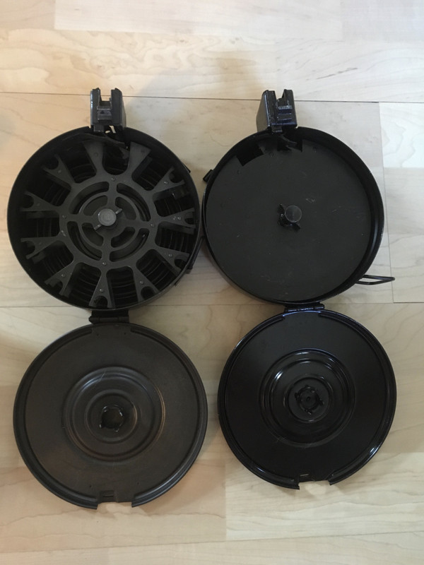 左:81弹鼓标准版。 右:81弹鼓加拿大5发铁片版